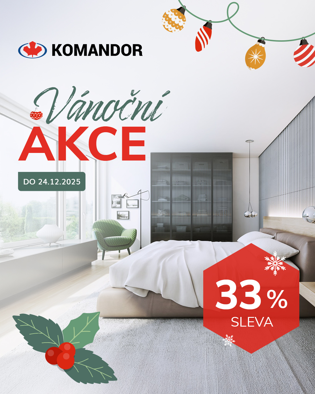 do 24.12.2025 probíhá Vánoční sleva 33% na vestavěné skříně.