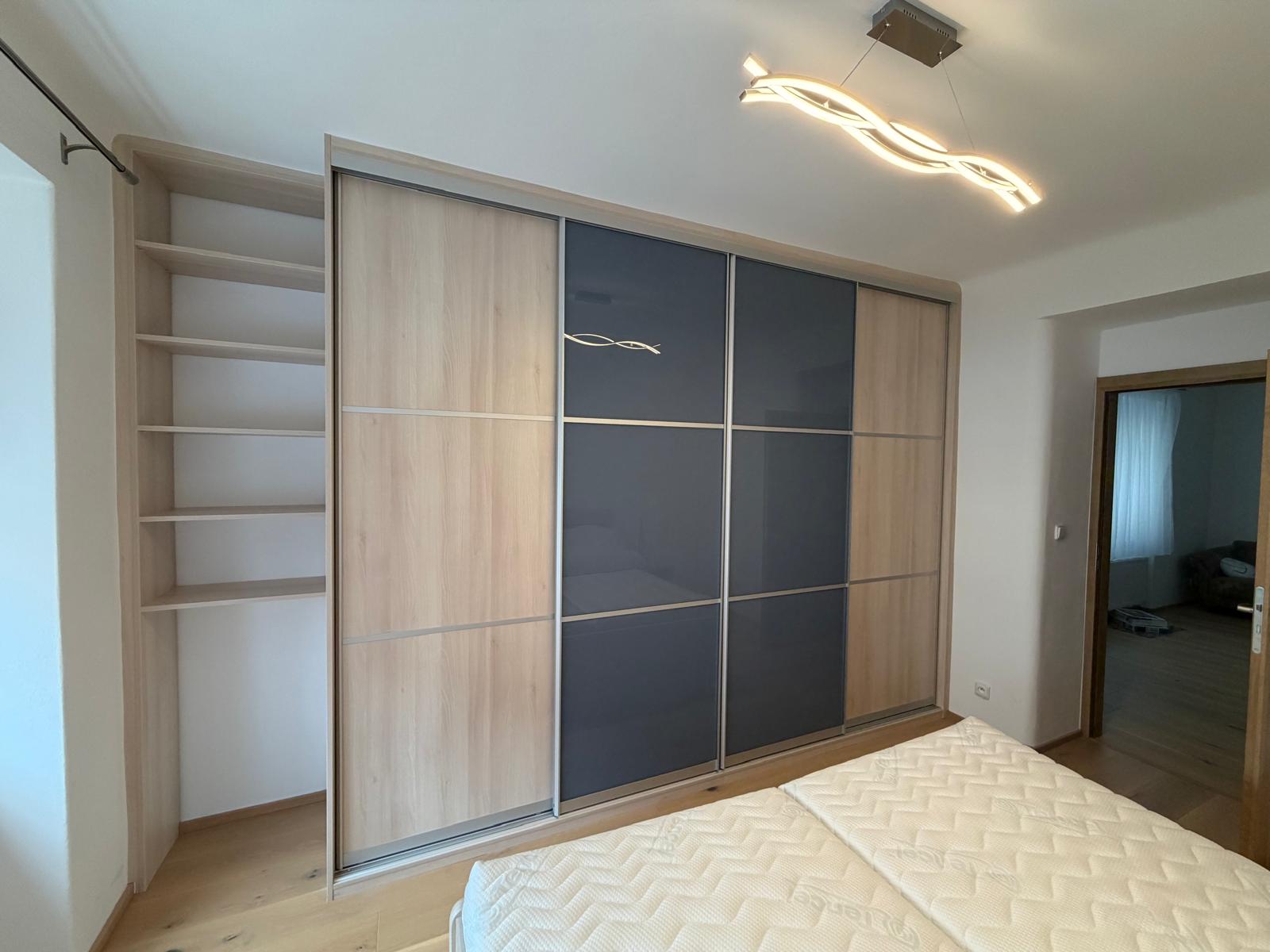 Posuvné dveře: hliník Safir stříbrné,LH 1277 Akacie/lakobel 7000 Blue shadow